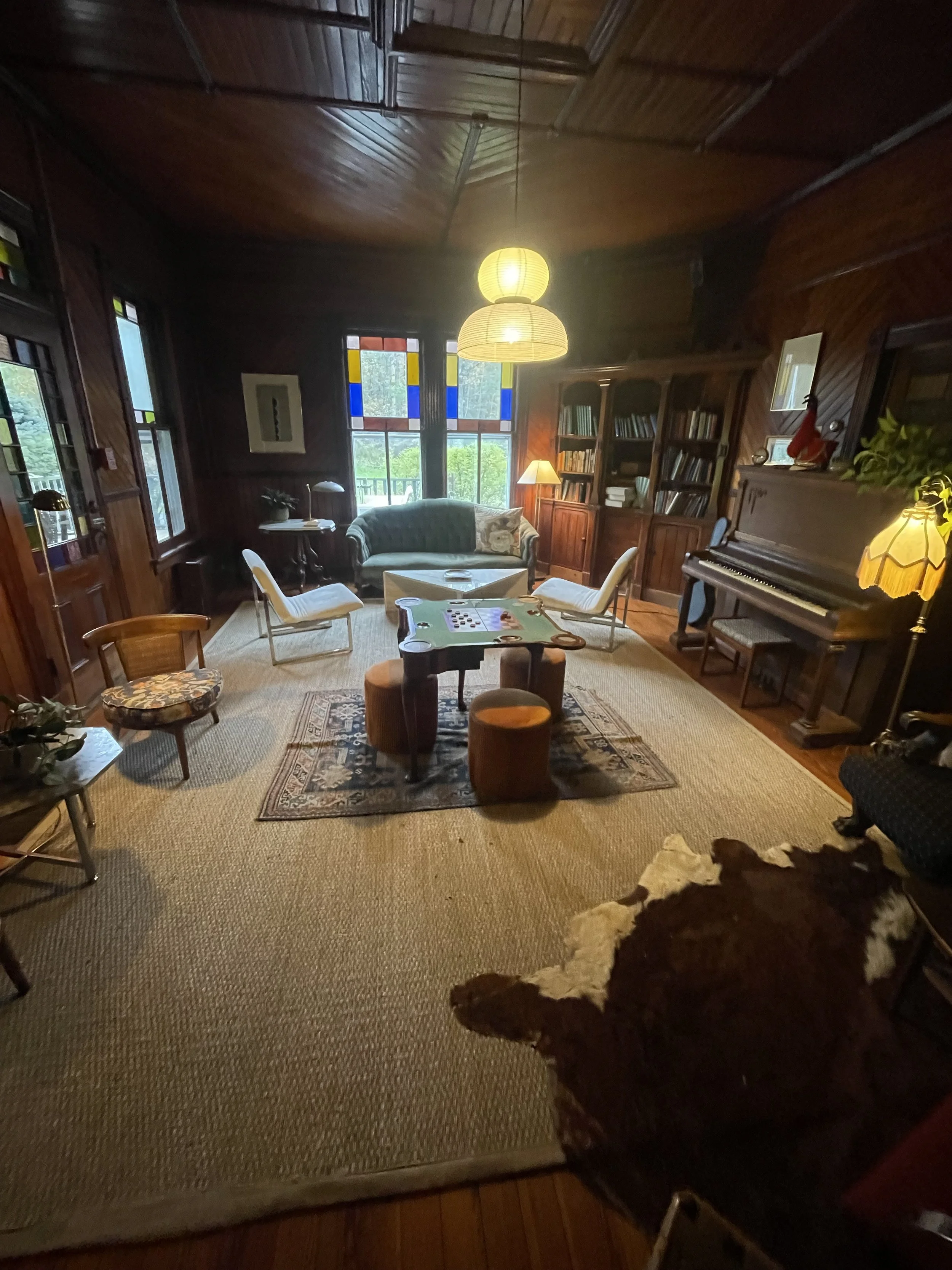 The hotel was restored really nicely. Downstairs, there was a bar, and two different lounge areas, both incredibly peaceful. In one of the lounges, there was a small furnace that I enjoyed reading near and also having breakfast. Our room was spacious too, and had a great view of the mountains.
